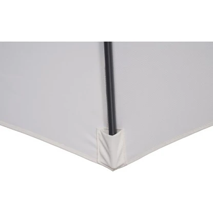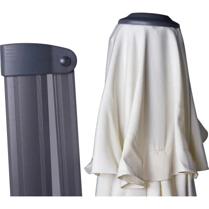 Der Mast und die Streben des Schirms sind aus leichtem, aber stabilem Aluminium gefertigt und exzellent verarbeitet. Dank des Mastdurchmessers von 75 mm hält er auch widrigsten Witterungsbedingungen problemlos stand. Die widerstandsfähige Bespannung aus 100 % Polyester-Gewebe (250 g/m²) ist robust, abnehmbar und waschbar und zeichnet sich zudem durch eine gute Lichtechtheit aus, wodurch das Material auch bei starker Sonneneinstrahlung nur wenig bis gar nicht ausbleicht. Mit dem Lichtschutzfaktor des Schirms von UV 50+ können Sie die Sonnentage unbeschwert genießen.