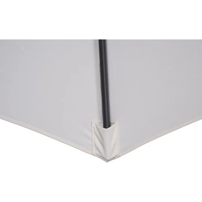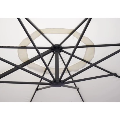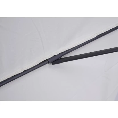 In der Verarbeitung und Materialauswahl weiß der Schirm durch Mast und Streben aus leichtem, aber stabilem Aluminium zu überzeugen. Dank des Mastdurchmessers von 75 mm hält er auch widrigsten Witterungsbedingungen problemlos stand. Die strapazierfähige Bespannung aus 100 % Polyester-Gewebe (250 g/m²) ist robust, abnehm- und waschbar und zeichnet sich zudem durch eine gute Lichtechtheit aus, wodurch das Material auch bei starker Sonneneinstrahlung nur wenig bis gar nicht ausbleicht. Dank des Lichtschutzfaktors von UV 50+ können Sie die Sonnentage unbeschwert genießen.