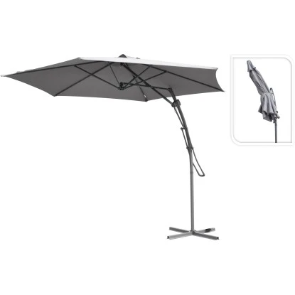 Mithilfe einer Hebelmechanik lässt sich der Ampelschirm bequem öffnen und schließen. Im aufgespannten Zustand besitzt er einen Ø von 380 cm. Die Höhe des Sonnenschirms beträgt maximal 245 cm.