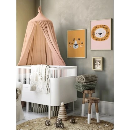 Der Baldachin schafft eine gemütliche Atmosphäre und bietet den Kleinen einen angenehmen Schutz. Mit seinem schlicht-modernen Design in der Farbe Rosa passt er zu sämtlichen Kinderzimmereinrichtungen – von zeitlos bis romantisch. Seine Maße betragen 240 cm x 50 cm x 50 cm.
