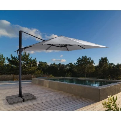 Organisieren Sie Mittagessen im Garten oder am Pool mit Freunden und Verwandten: Der Bizzotto Ampelschirm Ines schmückt nicht nur Ihren Garten, sondern schützt Sie auch vor den Sonnenstrahlen. Elegant und praktisch in der Anwendung, ist er ideal, um Tage in völliger Entspannung zu verbringen.