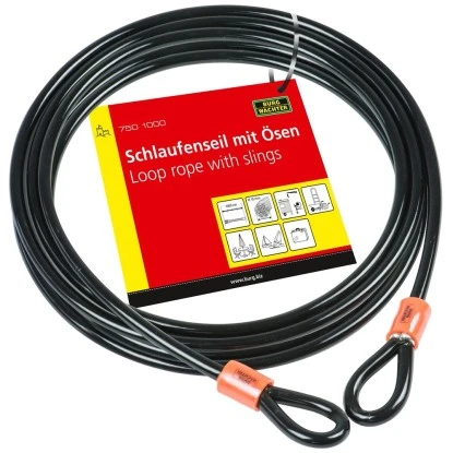 Das Burg-Wächter Sicherheitskabel 750 1000 misst ganze 10 Meter. Damit können Sie problemlos sperrige oder mehrere Gegenstände optimal sichern. Die zwei Ösen können mithilfe eines separaten Schlosses (nicht im Lieferumfang enthalten) flexibel und den Umgebungseigenschaften entsprechend miteinander verbunden werden. Das Stahlseil hat einen Durchmesser von 10 mm und ist mit einem schützenden Kunststoffmantel ausgestattet. Dieser schützt das Seil vor äußeren Einwirkungen, wie Witterung.
