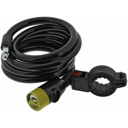 Das Burg Wächter Zylinder-Seilschloss 340 mit einer Gesamtlänge von 180 cm ist ein starkes Fahrrad-Schloss mit beleuchtetem Schlüssel. Eine praktische Halterung vereinfacht das Anbringen am Fahrrad.