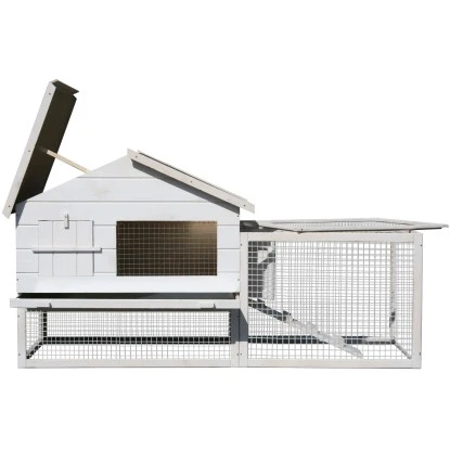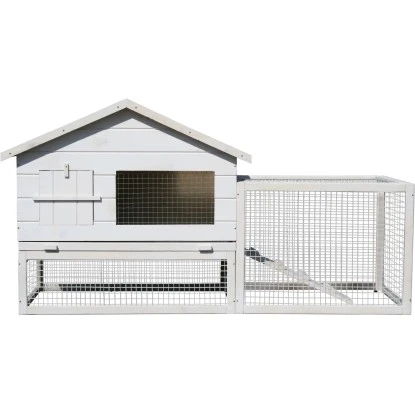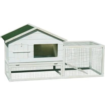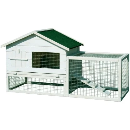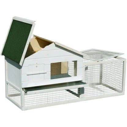 Der dekorativ-funktionale weiße Dobar Kleintierstall Wolbeck ist aus weißlasiertem Kiefernholz und dunkelgrüner Bitumendachpappe und ist ein komfortables Anwesen für Kleintiere. Unter dem Stall befindet sich ein Freigehege, welches zur Seite hin noch einmal abgetrennt ist durch eine weitere Tür zwischen den zwei Gehege-Abschnitten. Das Freigehege kann entweder rechts oder links angebaut werden. Unter dem Dach befindet sich ein extra geräumiger Stauraum, welcher auf Wunsch weggelassen werden kann.