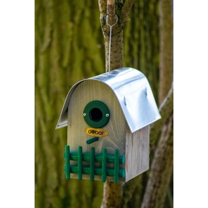 Der auffällige Nistkasten „Rundhaus“ mit robustem Aluminium-Dach verbindet Funktionalität und ein ansprechendes Äußeres. Die Nisthilfe besteht aus FSC®-zertifiziertem Kiefernholz (Pinus sylvestris, Hauptholzart) aus nachhaltiger und umweltfreundlicher Forstwirtschaft und ist wetterfest imprägniert. Im Lieferumfang sind drei austauschbare Einfluglöcher enthalten, die jeweils für bestimmte Vogelarten geeignet sind. Das Ø 28 mm Loch ist perfekt für kleine Meisenarten wie Blaumeisen, während das Ø 32mm Loch z.B. für Kohlmeisen und Kleiber geeignet ist. Das Ø 35 mm Loch passt hingegen für Sperlinge, Trauerschnäpper und viele weitere Wildvögel. Eine Anflugstange unter dem Eingang bietet zudem zusätzlichen Halt für die gefiederten Bewohner der Nisthöhle. Der herausnehmbare Boden ermöglicht eine unkomplizierte Reinigung des Innenraums nach der Brutsaison. Mithilfe der rostfreien Edelstahlschlaufe lässt sich das Vogelhaus überall im Garten und auf dem Balkon an Bäumen und Hauswänden anbringen. Die Herstellung in europäischer Produktion erfolgt in Handarbeit mit Fokus auf bester Qualität in der Verarbeitung. Der Nistkasten ist ca. 14 x 22 x 20 cm (L x B x H) groß.