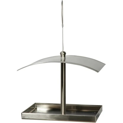 Die rechteckige Design-Futterstation mit geschwungenen Formen ist aus Edelstahl gefertigt und eignet sich für heimische Wildvögel. Ein extra großer Dachüberstand schützt das Vogelfutter vor Regen und Nässe. Als Bausatz ist der Artikel ganz einfach und schnell ohne Werkzeug zu montieren. Mit edlem Metalldraht zum Aufhängen.
