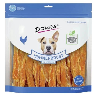 Hochwertiges Protein ist für eine ausgewogene Ernährung Ihres Hundes unerlässlich. Die Dokas Hühnerbrust in Streifen liefern Ihrem Vierbeiner genau das – gesundes Protein aus 100 % Hühnerbrustfilet, das ihm die notwendige Energie für seine täglichen Aktivitäten gibt.