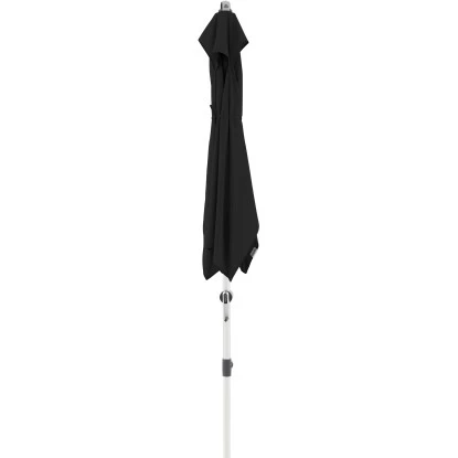 Die Kurbelmechanik ermöglicht Ihnen ein bequemes Öffnen und Schließen des Marktschirms. Aufgespannt besitzt er eine Größe von 140 cm in der Breite und 220 cm in der Tiefe. Dank der Knick- bzw. Neigungsfunktion können Sie den Schirm auch bei niedrigem Sonnenstand morgens und abends perfekt für einen idealen Schattenplatz ausrichten. Die Höhe des Sonnenschirms beträgt maximal 205 cm.