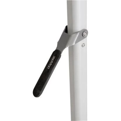 Mittels der Kurbelmechanik lässt sich der Marktschirm bequem öffnen und schließen. Aufgespannt besitzt er einen Ø von 350 cm. Um den Schirm gezielt für einen idealen Schattenplatz ausrichten zu können, lässt er sich neigen sowie um 360° drehen. Die maximale Höhe des Sonnenschirms beträgt 259 cm.