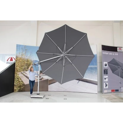 Der hochwertige Sonnenschirm Expert von Doppler in Hellgrau mit seiner klassischen achteckigen Form bringt ein modernes Ambiente auf Ihre Terrasse oder in Ihren Garten. Als optimal einstellbarer Schattenspender sorgt er für ein geselliges Beisammensitzen bei angenehmen Temperaturen. Sein Mittelmast besticht selbst bei windigeren Verhältnissen mit Zuverlässigkeit und Stabilität.