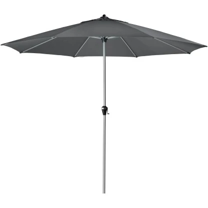 Um den Marktschirm bequem öffnen und schließen zu können, besitzt er eine Kurbelmechanik. Im aufgespannten Zustand besitzt er einen Ø von 376 cm. Damit Sie den Schirm gezielt für einen optimalen Schattenplatz ausrichten und bei Bedarf je nach Sonnenstand anpassen können, lässt er sich um 360° drehen. Die Höhe des Sonnenschirms beträgt maximal 280 cm.