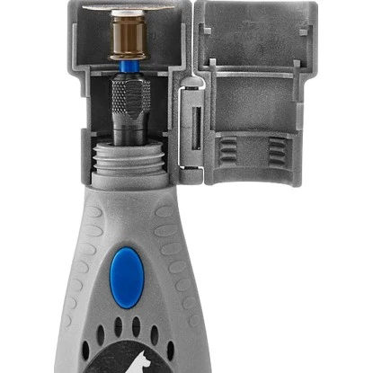 Das Dremel Krallenpflege-Set 7020-5 mit 2-stufiger Drehzahleinstellung (7.000 und 18.000 U/min) ermöglicht eine schnelle, einfache und sanfte Krallenpflege. Dank der 45° Neigung der Kunststoffhaube und dem schrittweisen Abschleifen der Krallen sind perfekte, glatte Ergebnisse möglich. Ein Vorsatz verdeckt dabei rotierende Teile und verhindert so ein zu starkes Kürzen der Krallen.