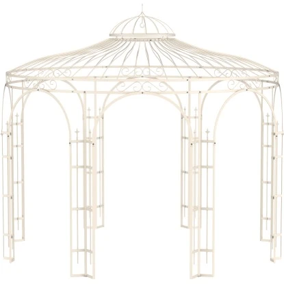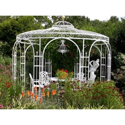 Größe und Montage Der Eleo Pavillon Florenz misst in der Gesamthöhe 3,00 m. Er besitzt einen Durchmesser von 3,70 m außen und 2,65 m innen. Die 6 Durchgänge messen in der Breite 1,10 m und in der Höhe 2,20 m. Mit 222 kg Gesamtgewicht ist der Pavillon besonders stabil. Die Montage können Sie selbst vornehmen, sie gelingt dank beiliegender Montageanleitung schnell und einfach. Idealerweise werden Sie von zwei weiteren Personen beim Aufbau des Pavillons unterstützt.