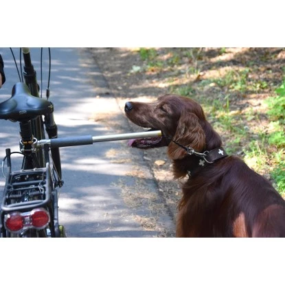 Eine Radtour mit Hund kann ein riskantes Unterfangen sein. Schließlich muss man drauf achten, dass man nicht vom eigenen Vierbeiner zu Fall gebracht wird, oder dass dieser sich in der Leine verheddert. Zusätzlich sollte man den Verkehr im Auge behalten und das alles während man in einer Hand die Hundeleine führen muss. Die entspannte Radtour kann da schnell zu einer anstrengenden Angelegenheit werden. Das durchdachte und stetig weiterentwickelte Design der Fahrradleine „Walky Dog Plus“ schafft Abhilfe. Befestigen Sie die Metallklemme mithilfe des in der Lieferung enthaltenen Inbusschlüssels am Fahrradrahmen unterhalb des Sattels (nicht an der Sattelstange). Durch die Befestigung mit zwei Muttern und die spezielle Form der Klemme wird ein Verrutschen durch bei der Fahrt auftretende Vibrationen verhindert, während der Fahrradrahmen durch eine Gummieinlage vor Verkratzen geschützt wird. Der Abstandhalter kann nun mit dem innovativen Quicklock-Schnellverschluss in Sekundenschnelle am Rad angebracht bzw. von diesem entfernt werden. Dies ermöglicht es, die Leine bequem vom Fahrrad zu lösen und als kurze „Notfall-Leine“ für kurze Strecken zu Fuß zu nutzen. Verschiedene Aspekte des „Walky Dog Plus“ sorgen für eine optimale Sicherheit für Hund und Halter/in. So verfügt Die Fahrradleine über drei Edelstahlfedern im Inneren des Griffs, die als Rückdämpfer das Ziehen des Hundes absorbieren. Je nach Kraft und Größe des Hundes können einzelne Federn leicht entfernt werden, wodurch sich die Länge der Leine etwas erhöht. Die ansonsten eher kurze Leine verhindert, dass sich der Hund vor oder hinter das Fahrrad bewegen kann und so zu einer Gefahr wird. Es wird empfohlen, den Griff nicht senkrecht zur Seite, sondern etwa 20° weiter nach hinten geneigt auszurichten, um einen optimalen Schutz zu gewährleisten. Außerdem sollte das Gewicht des Hundes nicht ein Drittel des Gewichts des Radfahrers übersteigen. Zum Schutz des Hundes sollte die Leine zudem nur an einem Brustgeschirr, nicht jedoch am Halsband befestigt werden. Dieses Produkt wird ausschließlich in Italien gefertigt und besteht aus sehr hochwertigen und langlebigen Materialien. Der Griff (Länge: ca. 37,5 cm) besteht aus einem speziellen, besonders widerstandsfähigen und korrosionsbeständigen Edelstahl (AISI 304), der auch in der Nahrungsmittelindustrie oder für chirurgische Instrumente verwendet wird. Die Leine (Länge: ca. 25 cm) an sich besteht aus extrem reißfester Fallschirmleine, wie sie bereits seit Jahrzehnten vom US-Militär genutzt wird.