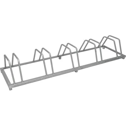 Der Fahrradständer eignet sich zum Abstellen von bis zu fünf Fahrrädern. Er besteht aus feuerverzinktem Stahl, der witterungsbeständig ist. Der Ständer kann Fahrräder mit einer Reifenbreite von bis zu 60 mm aufnehmen. Mit den vorgebohrten Löcher ist es möglich den Fahrradständer im Boden zu verankern. Das Befestigungsmaterial kann separat erworben werden.