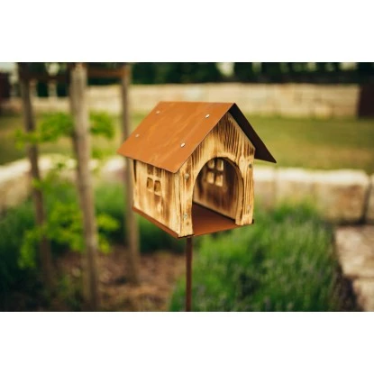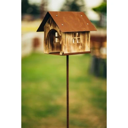 Das aus Stahlblech gefertigte und gerostete Ferrum Art Design Vogelhäuschen ist ein süßes Extra für jeden Garten.