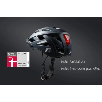 In der Dämmerung und in der Nacht sorgen die Reflexstreifen am Helm Fischer Urban Plus für eine gute Sichtbarkeit. Noch deutlicher ist das große, helle Rücklicht zu sehen, das unterschiedliche Leuchtfunktionen bietet. Mit dem reflektierenden Gurtsystem sind die Radfahrer auf der Straße noch besser zu erkennen. Der Helmgurt mit Ratschenverschluss verfügt über ein praktisches Schutzsystem, das die Benutzer vor dem Einklemmen der Haut bewahrt.