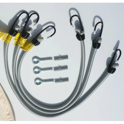 Das umlaufende, in den Saum eingenähte, Gurtband und die schweren D-Ringe an den Ecken sorgen für eine stabile Befestigung. Die 3 Spanngurte (ca. 70 cm, gespannt bis 100 cm) sind dauerelastisch, halten das Segel straff gespannt und können so den Wind gut aufnehmen. Bei Unwetterwarnungen sollte das Segel abgenommen werden. Das Sonnensegel ist bei 40° waschbar. Vor der Einlagerung über den Winter empfiehlt es sich das Segel von Verschmutzungen zu befreien. Die Lebensdauer kann dadurch deutlich verlängert werden.
