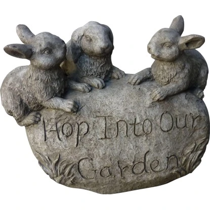 Diese liebevoll gestaltete Gartendekoration Kaninchen Welcome ist ein toller Blickfang für jeden Garten. Sie macht sich auch gut zwischen Blumen und Sträuchern. Die Figuren sind aus Polystone gefertigt und eignet sich hervorragend für den Außenbereich.