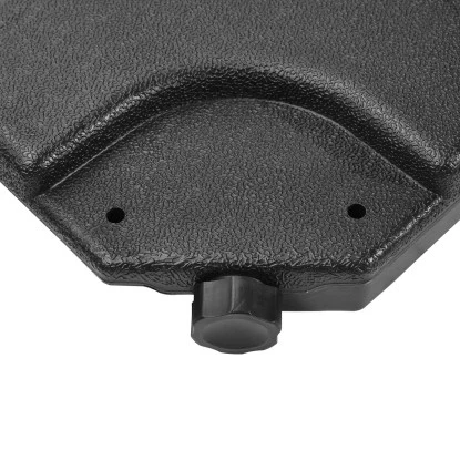 Die Einzelgröße der Platten vom Gartenfreude Ampelschirmständer betragen 50 x 50 x 7,5 cm. Inklusive Verbindungsbügel zwischen den Platten, um ein Verrutschen zu vermeiden. Die Plattenmodule können mit Wasser (ca. 60 kg Gewicht) oder mit Sand (ca. 80 kg Gewicht) befüllt werden.