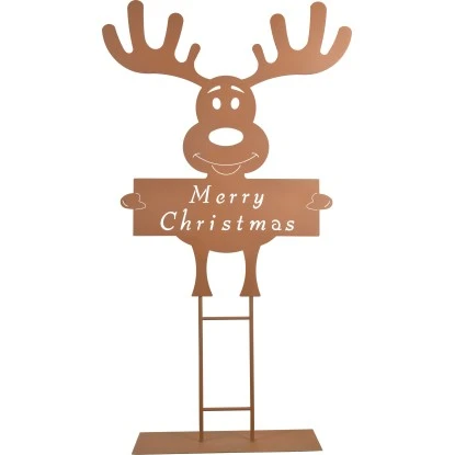 Der dekorative Rentier-Gartenstecker mit „Merry Christmas“ Schriftzug bringt festliche Stimmung in Ihr Zuhause. Dekorieren Sie Haus, Terrasse, Garten oder Balkon mit diesem weihnachtlichen Accessoire. Er macht sich besonders gut in Pflanzentöpfen oder Beeten. Gefertigt ist er aus witterungsbeständigem Metall. Seine Höhe beträgt 98 cm.