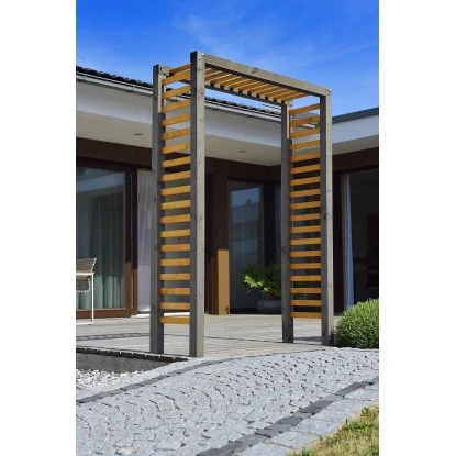 Die Gaspo Pergola Hallein 138 cm x 47 cm x 200 cm Gaspo in 2-farbiger Ausführung ist massiv ausgeführt in 70 mm x 70 mm Kanthölzern. Die Rankhilfen in 42 mm x 20 mm.