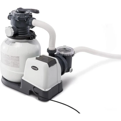 Sandfilter werden schon lange von Schwimmbadbesitzern als eine der besten Methoden angesehen, um ein klares, glitzerndes Schwimmbadwasser zu erhalten. Der komplett natürliche, günstige Sand leistet exzellente Arbeit beim Filtern von Schmutzpartikeln im Wasser. Dadurch ist der Sandfilter die einfachste Filtermethode am Markt. Diese Anlage, Modell , verfügt über eine Umwälzleistung von 6.000 l/h bzw. eine Pumpenleistung von 7.900 l/h, der Anschluss beträgt 230V/250 W. Diese Sandfilteranlage kann für Pools mit ca. 36.000 l Wasserinhalt eingesetzt und kann an alle handelsüblichen Aufstellpools mit einem Schlauchanschluss INTEX Standard angeschlossen werden. Die INTEX Wasserbelebungstechnologie verbessert die Zirkulation, Filtration und die Wasserklarheit Ihres Pools, sowie die Luftqualität. Die Sandfilteranlage kann bis zu einer maximalen Wassertemperatur von 35 °C verwendet werden und ist salzwassergeeignet bis zu einem Salzgehalt von 3 g/l.