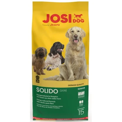 Josidog Solido ist ein ausgewogenes Hundefutter mit niedrigem Energiegehalt, das speziell für ältere oder übergewichtige Hunde entwickelt wurde. Es eignet sich besonders gut für Hunde, die weniger aktiv sind und einen reduzierten Energiebedarf haben. Das Futter ist darauf ausgerichtet, eine gesunde Ernährung zu gewährleisten und gleichzeitig das Gewicht deines Hundes zu kontrollieren.