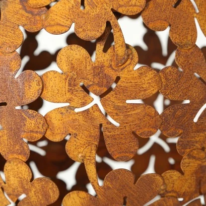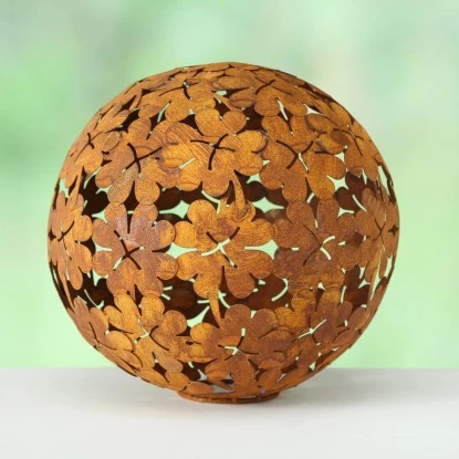 Die Klee Kugel hat eine rostbraune Farbe und besteht aus Eisen. Die vielen kleinen Kleeblätter sind zu einer hübschen Kugel zusammengefügt und sind ein Blickfang in Ihrem Garten. Zwischen den Blumen und Sträuchern können Sie so einen schicken Hingucker positionieren. Die Kugel hat einen Durchmesser von etwa 35 cm.