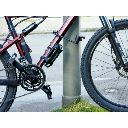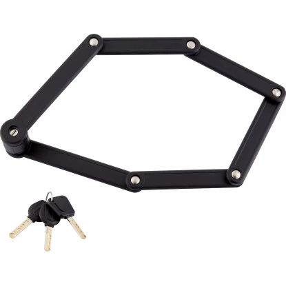 Das Faltschloss wird inklusive einer praktischen Rahmenhalterung geliefert, die Sie ohne Bohren mithilfe der dazugehörigen Kabelbinder an der gewünschten Stelle am Rahmen anbringen können. Zusammengefaltet wird es so platzsparend verstaut. Die Verstaumaße sind ca. 55 mm x 185 mm x 35 mm (B x H x T), das Gesamtgewicht beträgt ca. 0,951 kg. Dank der leichtgängigen Scharniere in robuster Bauweise können Sie das Faltschloss im Handumdrehen nutzen. Im Lieferumfang sind insgesamt drei Schlüssel enthalten, davon einer mit LED, wodurch Ihnen das Öffnen und Schließen bei Dunkelheit erleichtert wird. Mit einer Gesamtlänge von 85 cm bietet es Ihnen genügend Spielraum, um das Fahrrad oder motorisierte Zweiräder an einer dafür geeigneten Vorrichtung abzusichern.
