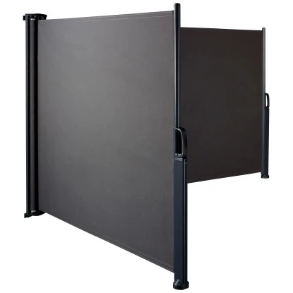Ihr pulverbeschichtetes Aluminiumgestell in Anthrazit bietet eine hohe Stabilität sowie eine einfache Handhabung, sodass Sie schnell und mit wenigen, einfachen Handgriffen den modernen Sicht- und Windschutz zum Einsatz bringen können. Manuell ausgezogen hat die freistehende Markise bei einem Neigungswinkel von 90° – 180° eine Breite von 300 cm je Seite.
