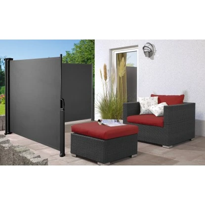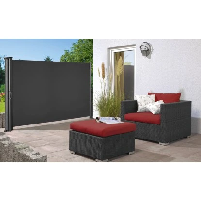 Mit der OBI Outdoor Living Vertikalmarkise Cordoba bekommen Sie den idealen Wind-, Sicht- und Sonnenschutz für Ihre Terrasse oder den Balkon. Dieser wird 2-seitig aufgestellt und bietet daher umfassenden Schutz. Durch seine schlichte und moderne Optik in der Farbe Anthrazit passt die Markise optisch in nahezu jeden Außenbereich.
