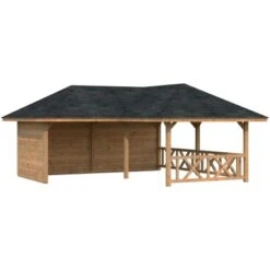 Der Palmako Pavillon Bianca Set 1 mit einer Fläche von 24,9 m² bietet ausreichend Platz für eine großzügige und luftige Lounge. Die Rück- und Seitenwand gewährleisten Sicht- und Windschutz, während das Geländer an den Seiten eine klare Abgrenzung schafft. Das Set zeichnet sich durch seine luftige Wohlfühlatmosphäre aus und wird aus nordischem Fichtenholz gefertigt.