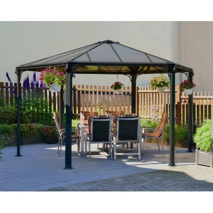 Elegant und im stillvollen Hexagon-Design präsentiert sich dieser wunderbare Pavillon, mit dem Sie eine entspannte Atmosphäre in Ihrem Garten schaffen.