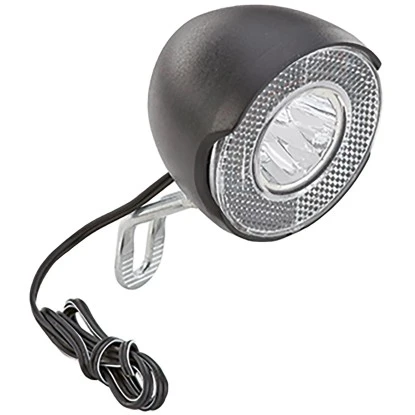 Der Prophete 1 Watt LED-Scheinwerfer 15 Lux mit Ein-/Aus-Schalter hat einen integrierten Ringreflektor für Naben- und Seitendynamos. Zusätzlich verfügt er über einen Nirosta-Halter.