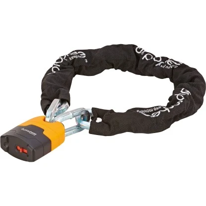 Das Prophete Kettenschloss in Schwarz/Orange ist aus gehärtetem Stahl mit Staubschutzklappe und wird inkl. 2 Schlüsseln geliefert, wovon einer beleuchtet ist.