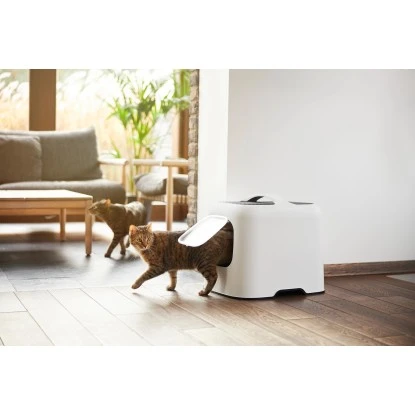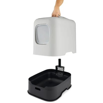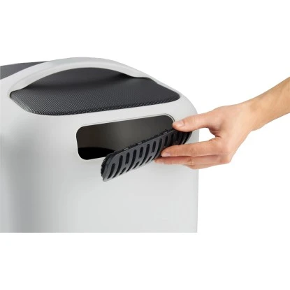 Die designorientierte Katzentoilette von Rotho in zeitloser Gestalt. Der Kohlefilter im Deckel fängt unangenehme Gerüche auf und verhindert, dass diese nach außen gelangen. Durch einen Magneten lässt sich die Tür schnell schließen und bleibt in geschlossener Position – eine weitere Eigenschaft, um schlechte Gerüche in der Katzentoilette zu bewahren. Eine Schaufel für die Reinigung der Katzentoilette ist inbegriffen. Der obere Teil der Katzentoilette lässt sich ganz einfach mit einer Hand entnehmen, was sie auch dank des ergonomischen Griffes sehr benutzerfreundlich macht. Das Produkt besteht aus rezykliertem Kunststoff.