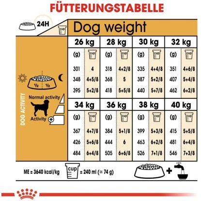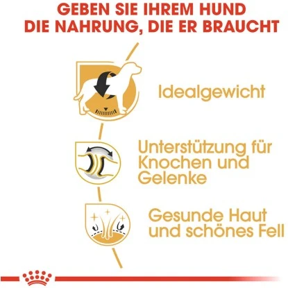 Der liebenswerte, lebhafte und gutmütige Labrador Retriever ist sowohl ein beliebtes Familienhaustier als auch ein vielseitiger Begleithund. Dank seiner Beweglichkeit, Intelligenz und seines ausgeprägten Geruchssinns wird der Labrador Retriever gerne als Blindenhund oder Such- und Rettungshund eingesetzt. Die Ernährung ist auch beim ausgewachsenen Labrador ein wesentlicher Baustein für ein gesundes Leben. Aus diesem Grund ist die Auswahl einer abgestimmten Nahrung sehr wichtig. Royal Canin Labrador Retriever Adult ist für Labrador Hunde ab dem 15. Lebensmonat geeignet und wurde speziell auf die Bedürfnisse dieser Rasse abgestimmt. Diese Rassenahrung hat einen speziell angepassten Energiegehalt, der Ihrem Labbi dabei hilft, sein Idealgewicht zu halten. Die enthaltene Faserkombination sorgt für ein langanhaltendes Sättigungsgefühl und unterstützt eine gesunde und regelmäßige Verdauung. Die Kroketten des Trockenfutters zeichnen sich durch eine spezielle Form aus, die zum Kauen anregt und dadurch einem allzu hastigen Schlingen vorbeugt.
