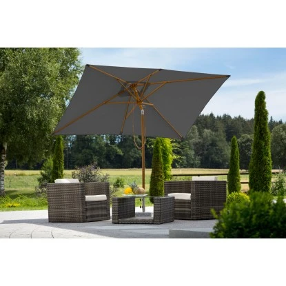 Aufgrund seiner rechteckigen Form und seiner Größe eignet er sich hervorragend für den Einsatz im Garten. Aber auch auf Ihrer Terrasse oder auf Ihrem Balkon hinterlässt dieser Schirm einen bleibenden Eindruck bei Ihren Gästen.