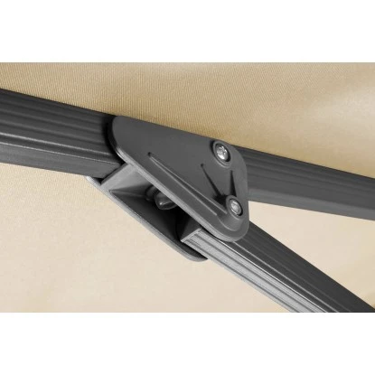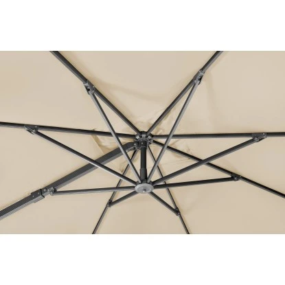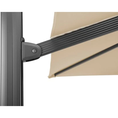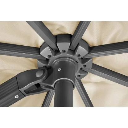In der Verarbeitung und Materialauswahl weiß der Schirm durch Mast und Streben aus leichtem, aber stabilem Aluminium zu überzeugen. Die strapazierfähige Bespannung aus 100 % Polyester-Gewebe (200 g/m²) ist robust, abnehmbar und waschbar und zeichnet sich zudem durch eine sehr gute Lichtechtheit aus, wodurch das Material auch bei starker Sonneneinstrahlung kaum ausbleicht. Mit dem Lichtschutzfaktor des Schirms von UV 50+ können Sie die Sonnentage unbeschwert genießen.