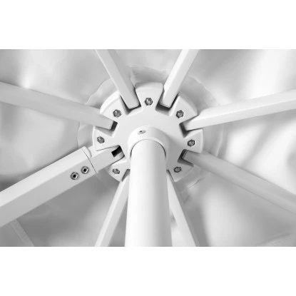 Der Mast und die Streben des Schirms sind aus leichtem, aber stabilem Aluminium gefertigt und exzellent verarbeitet. Die strapazierfähige Bespannung aus 100 % Polyester-Gewebe (200 g/m²) ist robust, abnehm- und waschbar und zeichnet sich zudem durch eine sehr gute Lichtechtheit aus, wodurch das Material auch bei starker Sonneneinstrahlung kaum ausbleicht. Dank des Lichtschutzfaktors von UV 50+ können Sie die Sonnentage unbeschwert genießen.
