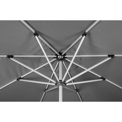 In der Materialauswahl und Verarbeitung weiß der Schirm durch Mast und Streben aus leichtem, aber stabilem Aluminium zu überzeugen. Dank des Mastdurchmessers von 48 mm hält er auch widrigsten Witterungsbedingungen problemlos stand. Die solide Bespannung aus 100 % Polyester-Gewebe (280 g/m²) ist robust, abnehm- und waschbar. Außerdem zeichnet sie sich durch eine sehr gute Lichtechtheit aus, was bedeutet, dass das Material auch bei starker Sonneneinstrahlung kaum ausbleicht. Mit dem Lichtschutzfaktor des Schirms von UV 80 können Sie die Sonnentage unbeschwert genießen.