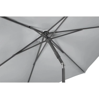 In der Verarbeitung und Materialauswahl weiß der Schirm durch Mast und Streben aus stabilem und langlebigem Stahl zu überzeugen. Die widerstandsfähige Bespannung aus 100 % Polyester-Gewebe (180 g/m²) ist robust, abnehm- und waschbar. Außerdem zeichnet sie sich durch eine gute Lichtechtheit aus, was bedeutet, dass das Material auch bei starker Sonneneinstrahlung nur wenig bis gar nicht ausbleicht. Mit dem Lichtschutzfaktor des Schirms von UV 50+ können Sie den Sommer unbeschwert genießen.