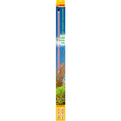 Insbesondere in Aquarien mit vielen Wasserpflanzen wie Aquascapes oder Hollandaquarien kommt der Beleuchtung eine besondere Bedeutung zu. Nur bei optimalem Licht wachsen die Pflanzen gleichmäßig und ansprechend. Die Sera Aquarium LED-Leuchte Plantcolor Sunrise wurde speziell für die Beleuchtung von Pflanzen entwickelt und fördert die Photosynthese. So werden ein optimales Wachstum und die Vermehrung der Unterwasserpflanzen gewährleistet. Die roten und blauen Lichtanteile heben dabei die Farben der Pflanzen hervor und erzeugen einen farbverstärkenden Effekt. In Kombination mit dem Sera Aquarium LED Digital Dimmer kann die Sera Aquarium LED X-Change Tube Plantcolor Sunrise in der Helligkeit bzw. Lichtintensität gesteuert werden. Zusätzlich lassen sich sogar zu individuell programmierbaren Zeiten Sonnenaufgänge und Sonnenuntergänge simulieren.
