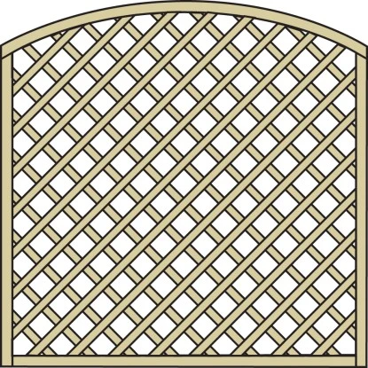 Das Bogendiagonal-Rankgitter ist Grün druckimprägniert. Rahmen: Stärke 34 mm x 54 mm, verzapft, glattgehobelt – Leimholzbogen mehrfach verleimt. Leisten: Stärke 8 mm x 40 mm, strukturgehobelt, gerundete Kanten, überlappend, Maschenweite ca. 10 cm. Das Rankgitter wird an Vierkant-Zaunpfählen mit gerundetem Kopf 9 cm x 9 cm x 180 cm (Grün druckimprägniert) montiert. Um die Lebensdauer ihres Zaunes zu verlängern, sind die unteren Rahmenteile angebohrt. So kann das Wasser ablaufen und ihr Zaun ist konstruktiv geschützt.