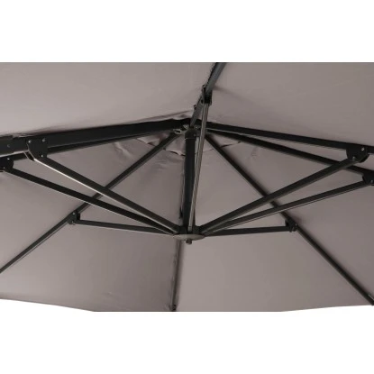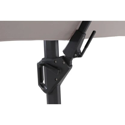 Dank der Kurbelmechanik können Sie den Ampelschirm bequem öffnen und schließen. Aufgespannt besitzt er eine Größe von 260 cm in der Breite und 350 cm in der Tiefe. Um den Schirm gezielt für einen perfekten Schattenplatz ausrichten zu können, lässt er sich neigen sowie um 360° drehen. Die maximale Höhe des Sonnenschirms beträgt 252 cm.