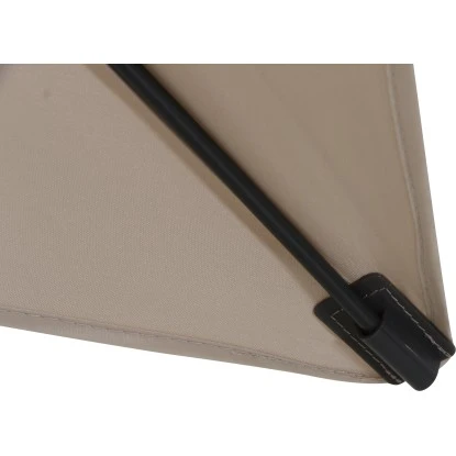 Der Mast und die Streben des Schirms sind aus stabilem und langlebigem Stahl gefertigt und exzellent verarbeitet. Die solide Bespannung aus 100 % Polyester-Gewebe (160 g/m²) ist robust, abnehmbar und waschbar und zeichnet sich zudem durch eine ziemlich gute Lichtechtheit aus, wodurch das Material auch bei starker Sonneneinstrahlung über die Zeit nur wenig ausbleicht. Dank des Lichtschutzfaktors von UV 50+ können Sie den Sommer unbeschwert genießen.