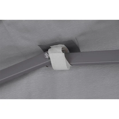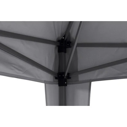 Das Stahlgestell ist pulverbeschichtet in der Farbe grau. Die Pfosten haben eine Stärke von 25×25 mm. Das Dach ist aus Polyester, 160 g/m² in der Farbe grau. Inklusive 4 Seitenteile die voll geschlossen sind. Inklusive Spannseilen, Heringen und Tragetasche.