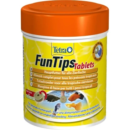 Die Tetra Aquarium-Fischfutter-Pellets FunTips Tablets eignen sich durch die biologisch ausgewogenen Inhaltsstoffe besonders gut als Leckerbissen für alle tropischen Fische. Die orangefarbene Seite der Tablette versorgt die Fische mit Shrimps und Carotinoiden zur Verstärkung der Farben. Die grüne Seite besteht aus pflanzlichen Zutaten für gesunde und vitale Tiere. Die Haft-Futtertabletten sind aber nicht nur ein gesunder Leckerbissen für zwischendurch. Dadurch, dass die Futtertablette an der Scheibe haftet, lassen sich die Fische und ihre Verhaltensweisen richtig gut beobachten.