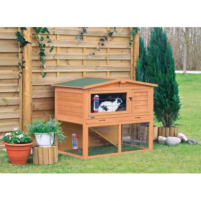 Hüttenzauber bei Trixie: Ställe für Kaninchen und andere Kleintiere sowie nützliches Zubehör finden Sie hier. Der Kleintierstall Natura ist aus lasiertem Kiefernholz gefertigt und mit stabilen, pulverbeschichteten Metallgittern ausgestattet. Das Dach besteht aus besandeter Dachpappe und ist von oben zu öffnen. Die Holzrückwand im Freilaufgehege schützt Ihre geliebten Kleinen vor starkem Wind. Der zweistöckige Kleintierstall bietet verschiedene Rückzugsmöglichkeiten und ist durch die herausziehbare Kunststoffwanne leicht zu reinigen. Die Bodenluke ist mit einer Kunststoffbeschichtung versehen und verschließbar. Der Trixie Kleintierstall Natura ist durch das Freilaufgehege Natura erweiterbar.